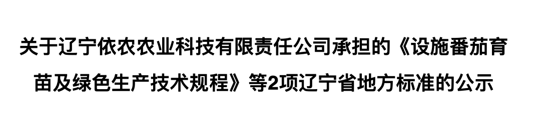 根據(jù)遼寧省地方標準管理辦法(遼農(nóng)監(jiān)[2017]34號)要求,現(xiàn)將遼寧依農(nóng)農(nóng)業(yè)科技有限責任公司和遼寧省農(nóng)業(yè)科學院共同承擔的《設施黃瓜育苗及綠色生產(chǎn)技術(shù)規(guī)程》征求意見稿和《設施番茄育苗及綠色生產(chǎn)技術(shù)規(guī)程》等2項遼寧省地方標準進行公示,并面向社會征求意見.